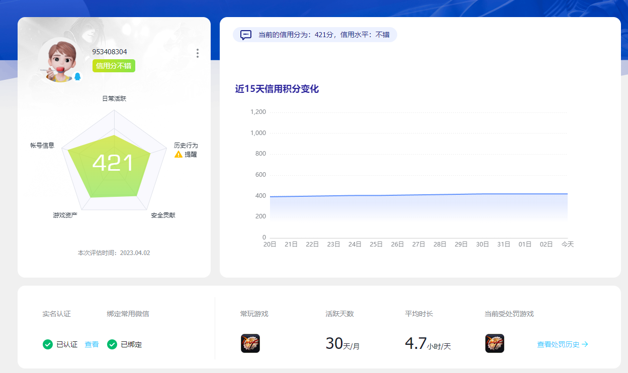 9.TP信用分:421